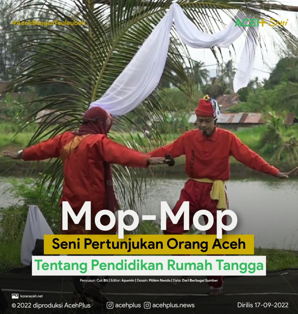 - Musik Mob-mob merupakan jenis kesenian tradisional dari Aceh yang dikenal juga sebagai Biola Aceh. Seni pertunjukan ini menghimpun unsur musik, dialog, dan aksi tunggal yang dimainkan oleh beberapa orang dan biasanya menggambarkan cerita kehidupan sehari-hari, khususnya hubungan dan konflik keluarga, serta menyampaikan nasihat moral kepada penonton.